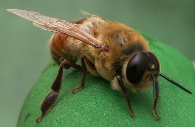 作業中、指先にオスバチが乗ってきました