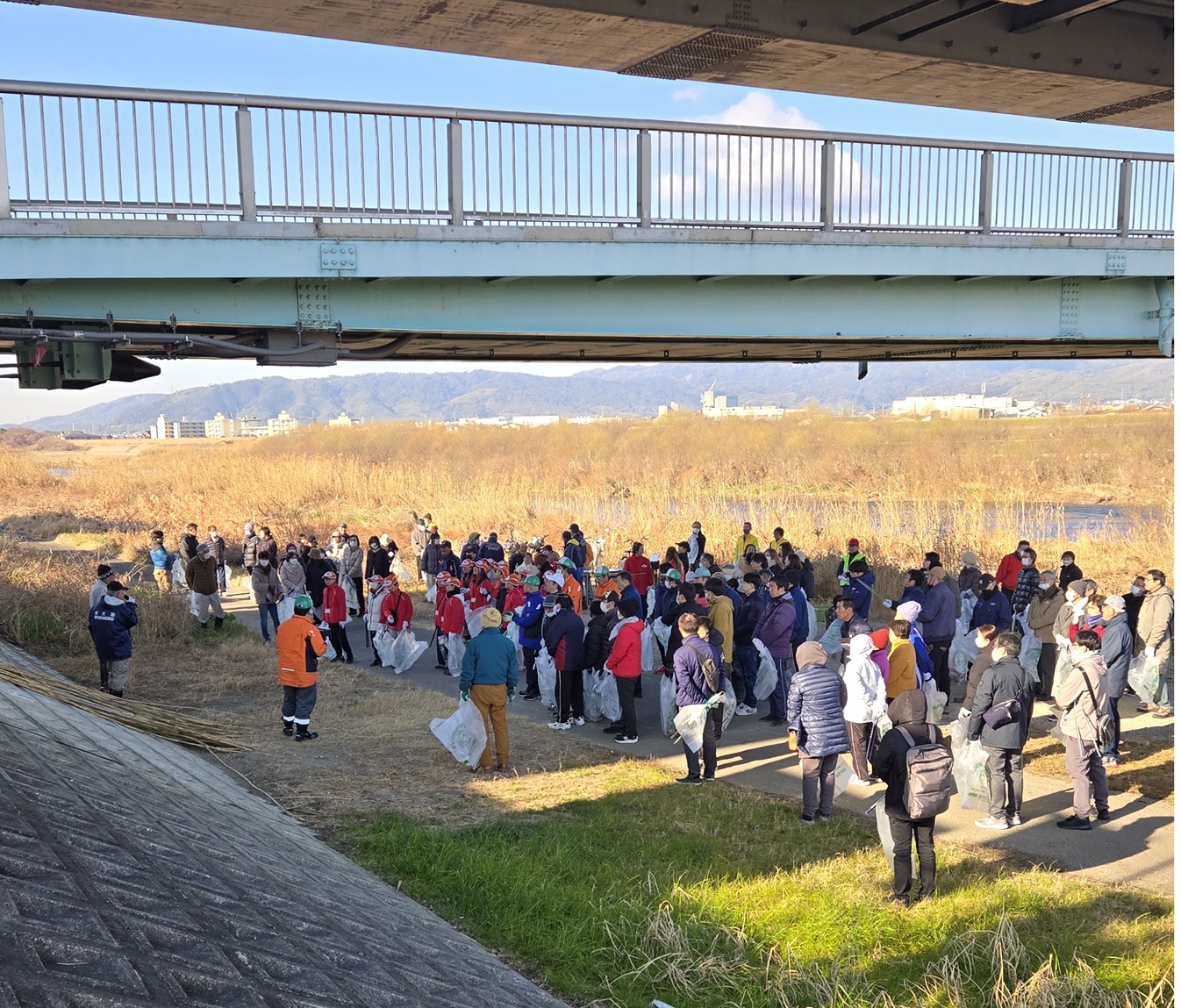 このイベントは、北は南丹市から南は島本町まで、桂川流域23か所同時に行われます。当社が参加した羽束師橋エリアでも、多くの方が参加されおおくのごみが回収されました。