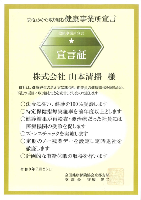 グループ企業の㈱山本清掃は、令和3年7月26日に健康経営の考えに基づき、