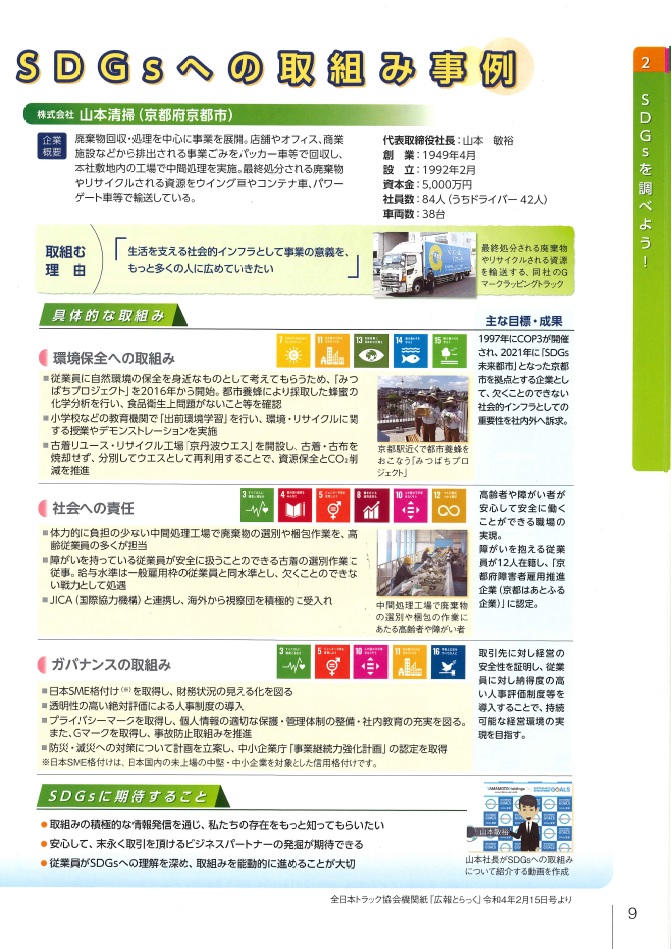 全日本トラック協会が発行する「トラック運送事業者の今すぐできるSDGs」に