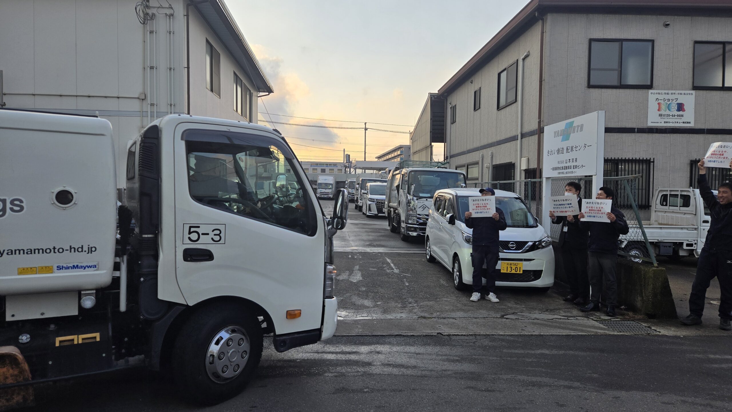 寒さが厳しくなる中でも、毎日変わらず回収に出てくれているドライバーのみなさんの安全を願って、11月25日に帰庫立ち合いを行いました。