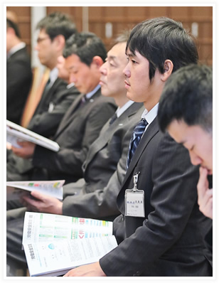 グループ会社の社員が一同に会し、新規事業計画や新営業システムの導入、コーポレートガバナンスの進化など今後の経営戦略を共有するとともに、安全の徹底、事故予防を実現するための心構えを確認し、労働安全宣言を採択しました。